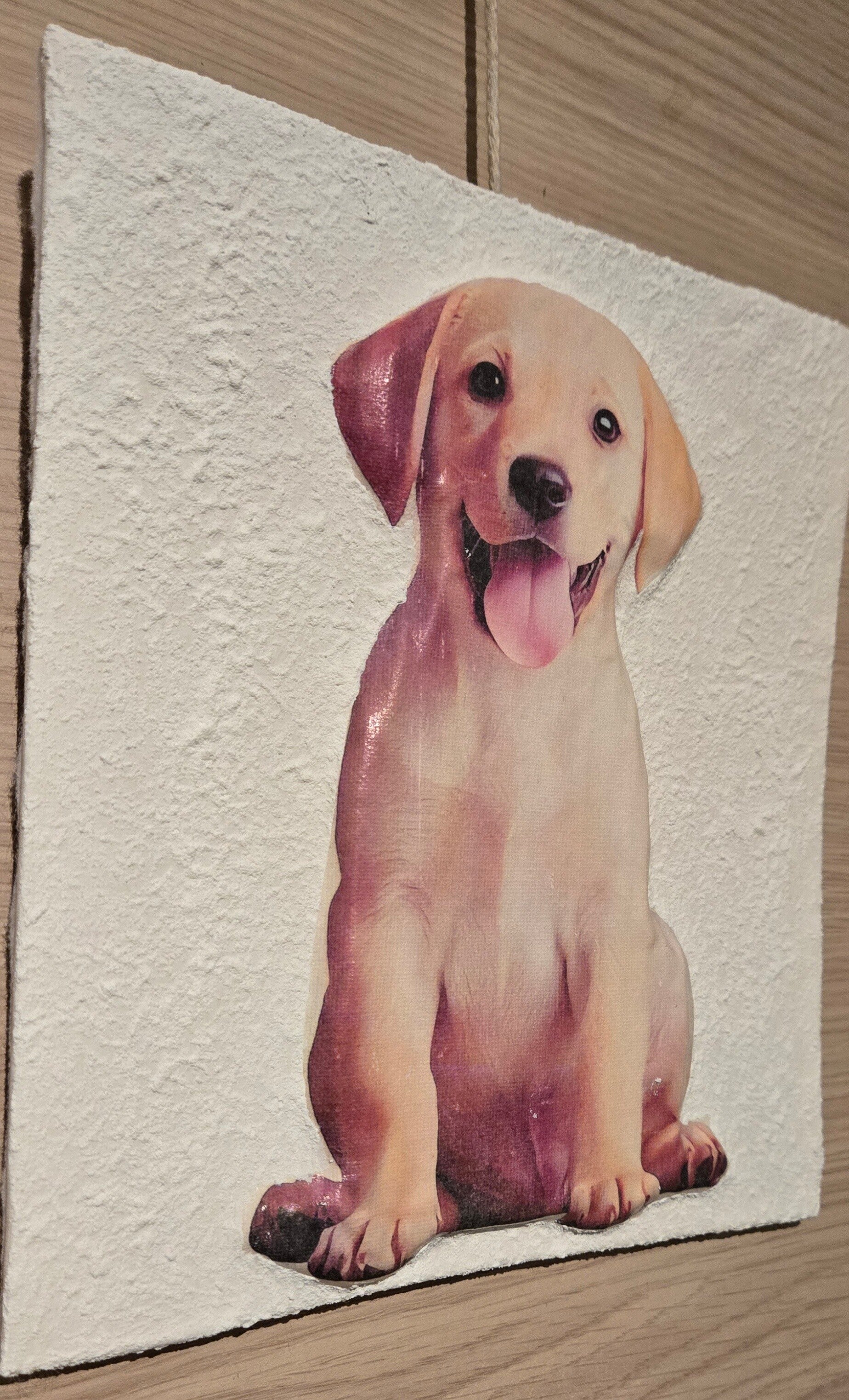 Création sur toile, d'un motif en relief sur fond de peinture blanche granuleuse